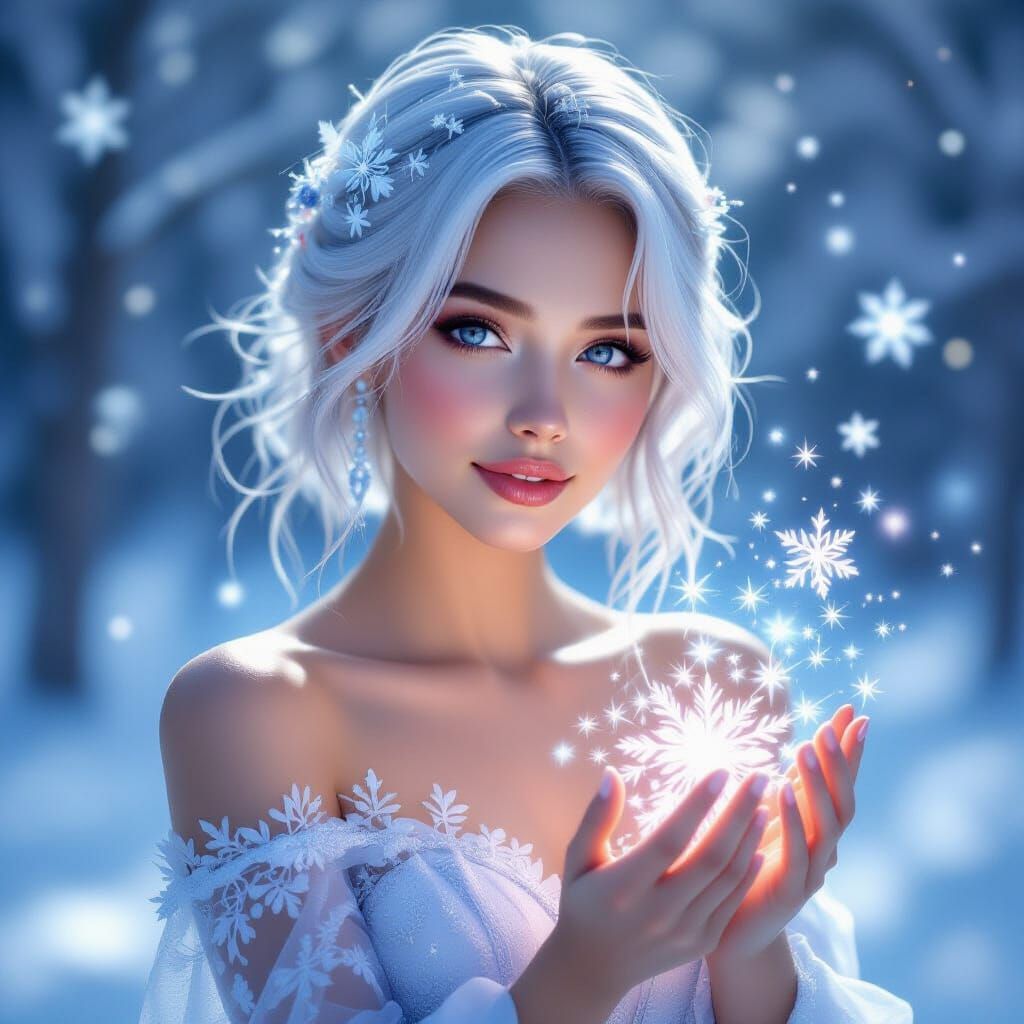 Simply radiant. Adore the snow flakes in the hands, air hair and the lace! 🥰🩶🩶