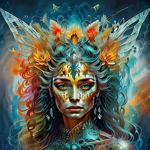 A vibrant watercolor fairy with teal and orange accents. This image showcases the delicate details and flowing lines characteristic of watercolor art, enhanced by magical and laminar flow effects.