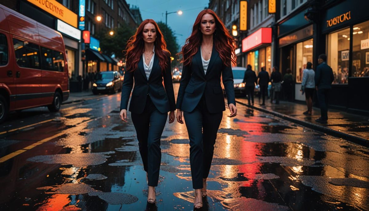 A vibrant image of a woman walking through a neon-lit London street. The digital artwork features high contrast colors and dynamic street art murals in a graffiti aesthetic.