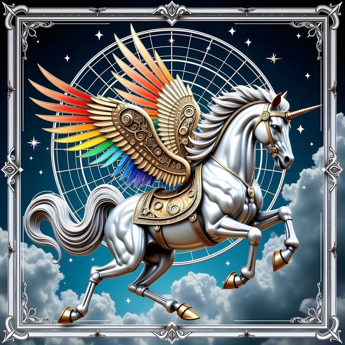 Easily design your own flying horses with gears and Celtic designs using our free AI image generator.
