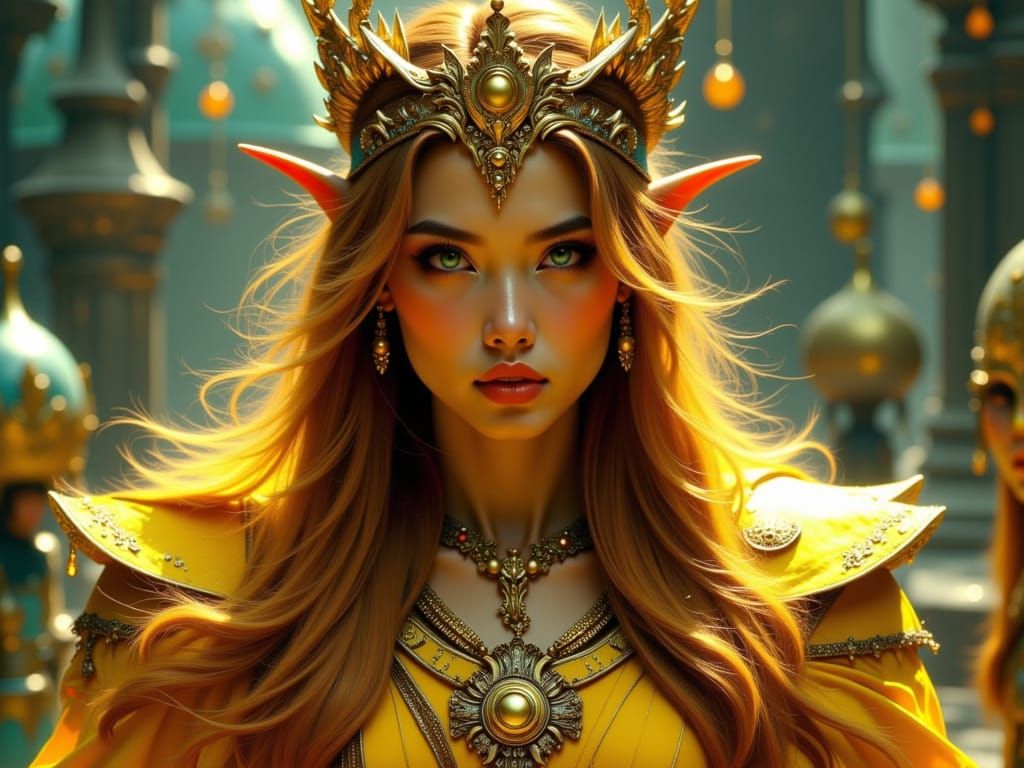 This image features a charismatic royal guard in a fantasy sci-fi setting, with a detailed kingdom background. The art style emphasizes bold lines and deep contrast with a vibrant color palette.
