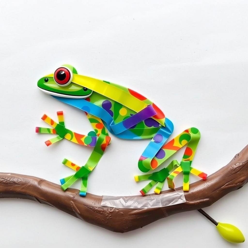 This image shows a colorful frog on a loop tree, rendered in a vibrant and artistic style. The visual elements create a unique and eye-catching composition.