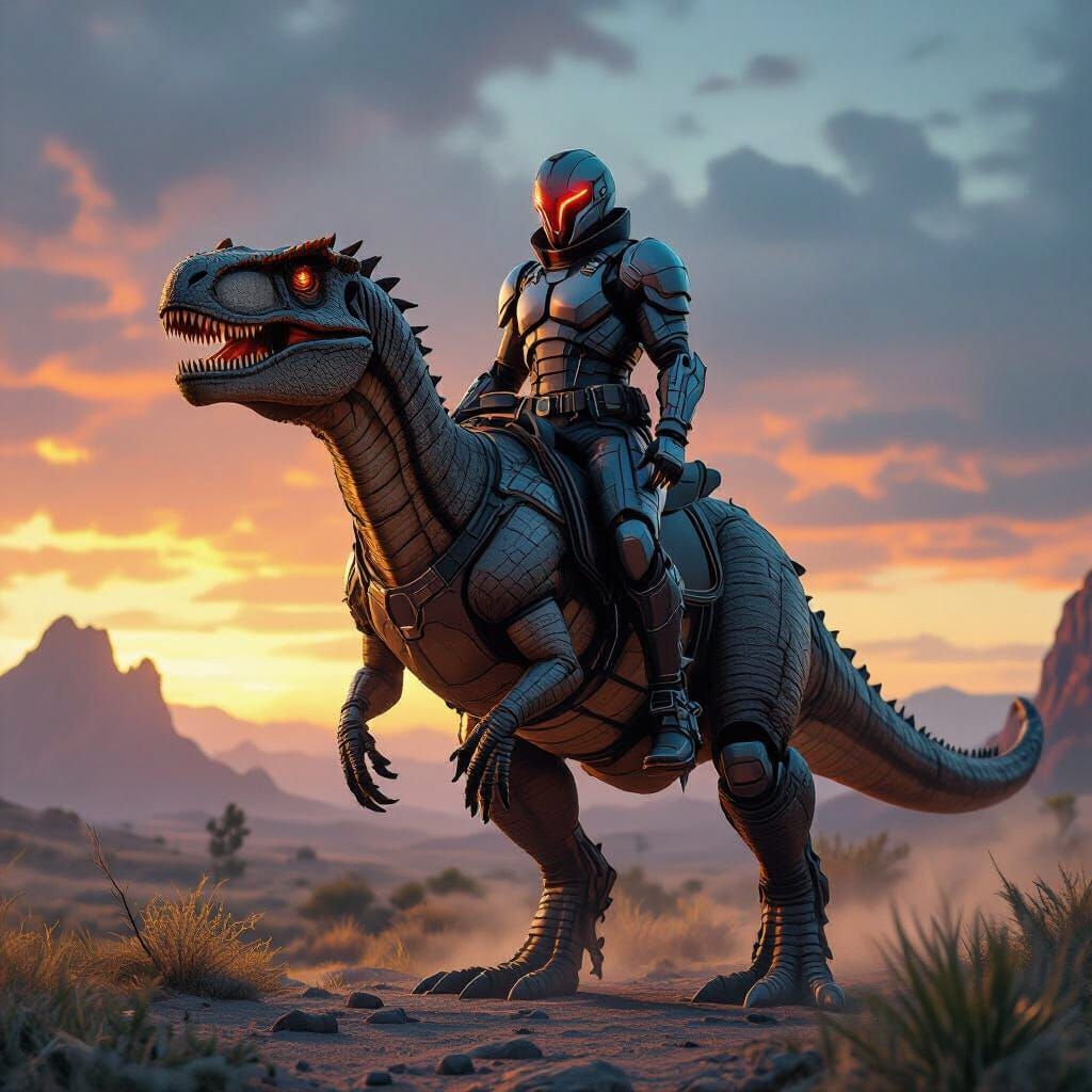 Easily generate your own cyborg dinosaur rider images with our free and flexible AI tool.