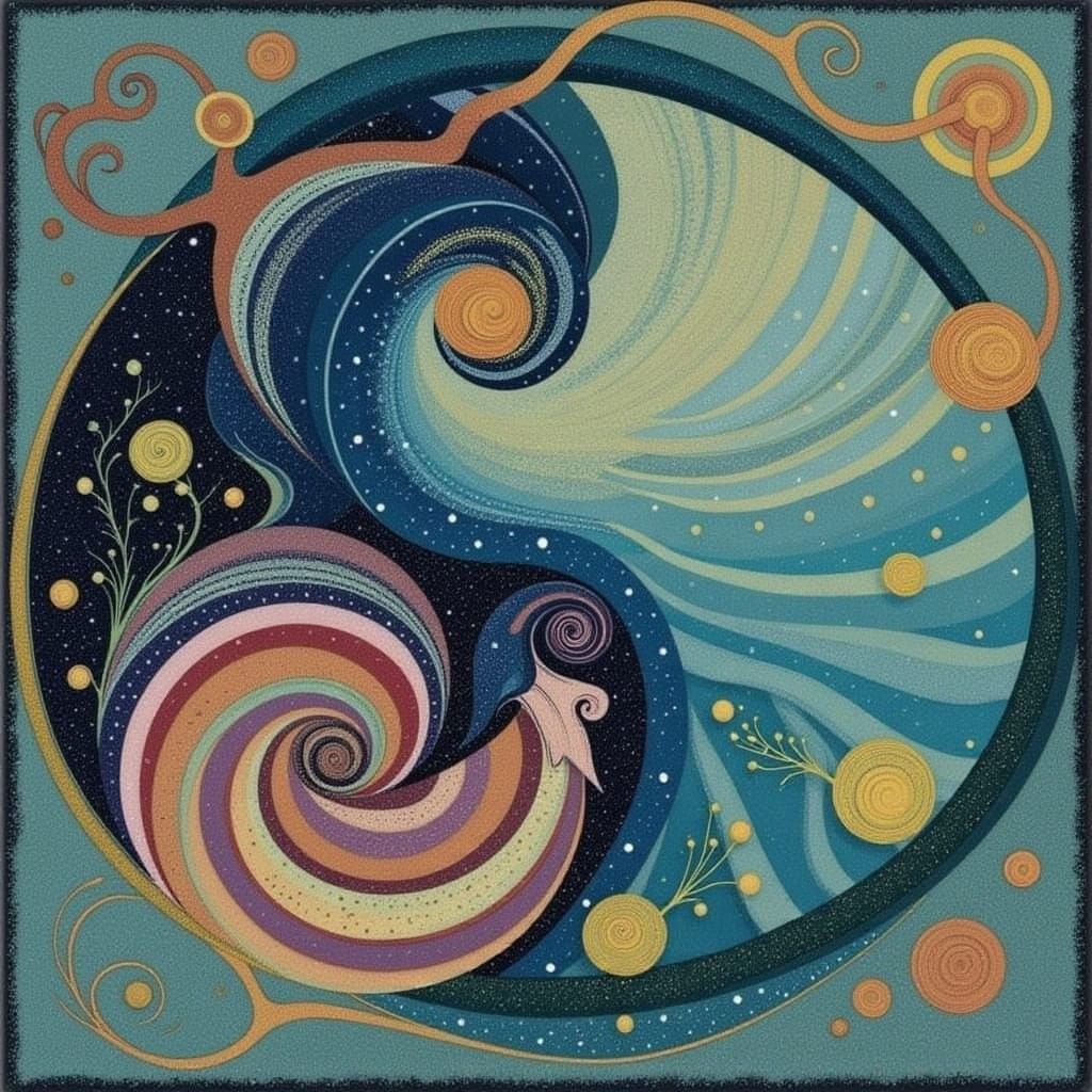 This image combines abstract elements inspired by lampwork glass artistry and the evocative theme of cicada song, creating a unique visual composition.