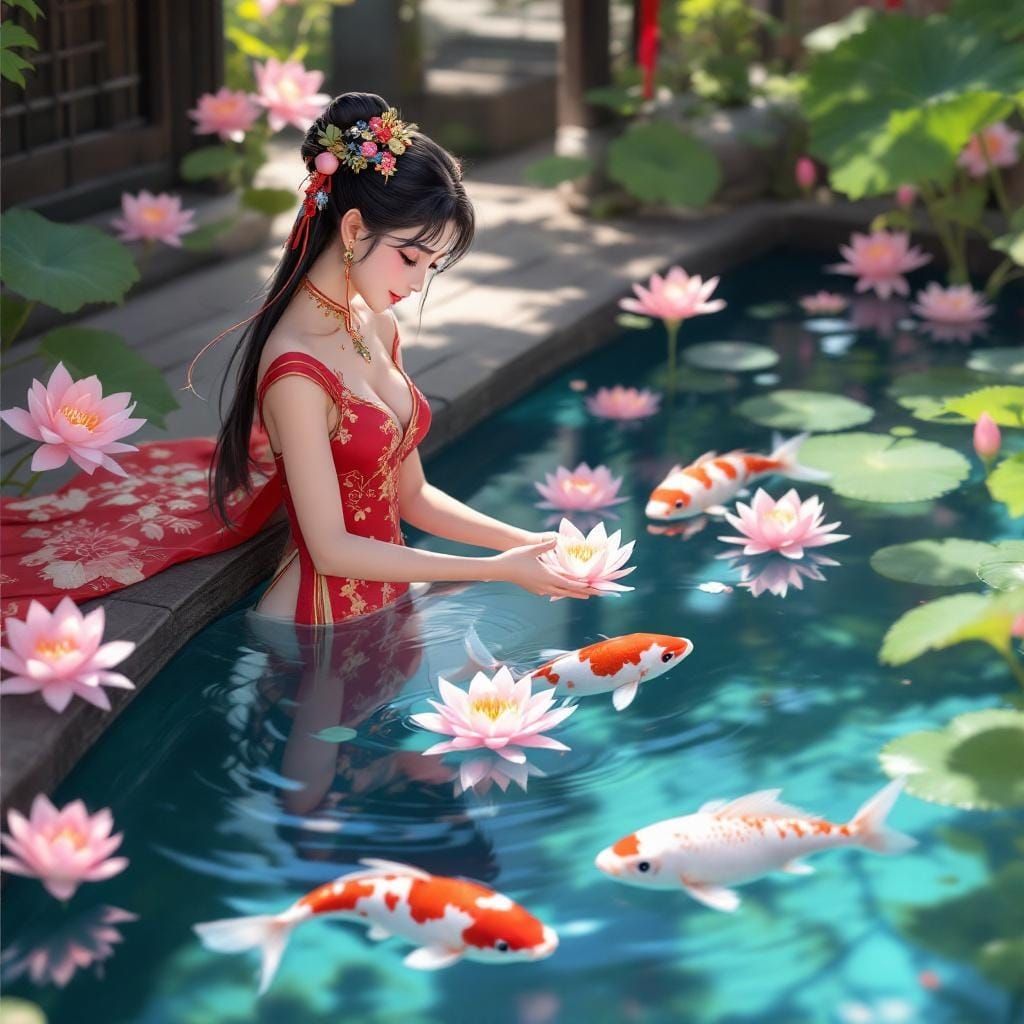 Create your own images of cute Chinese girls or koi fish with our free and easy AI image generator!