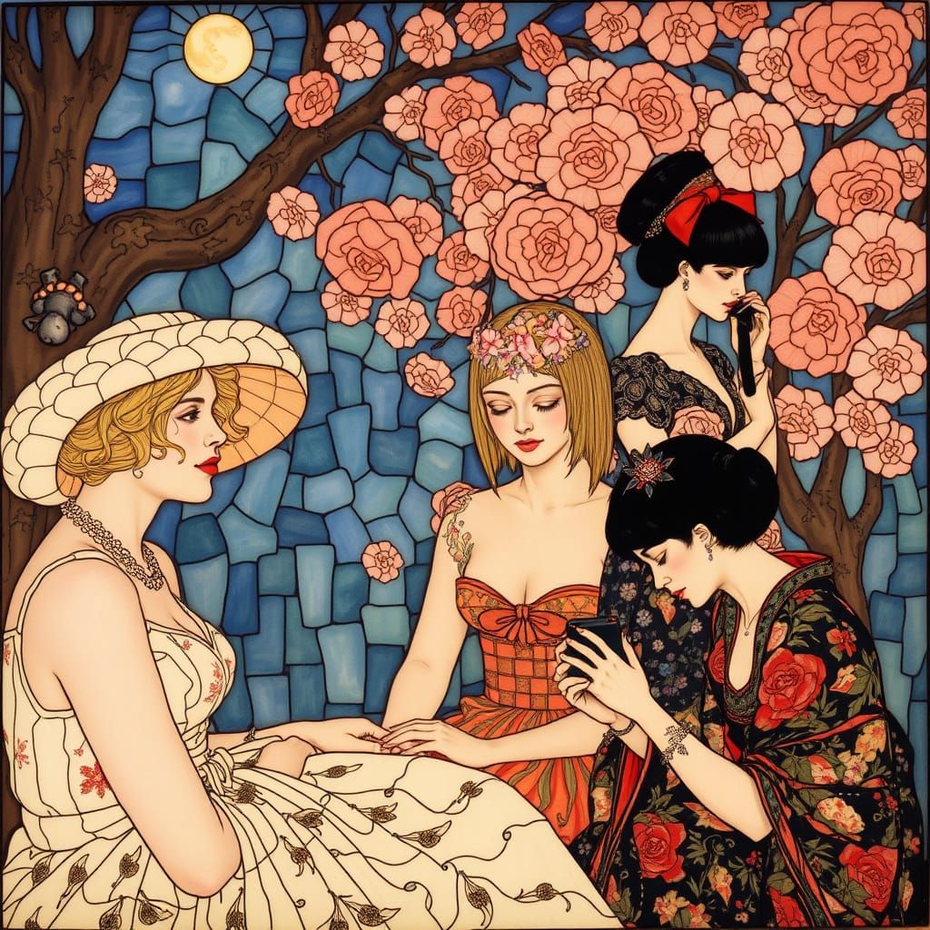 This image combines the soft, dreamy brushstrokes of Impressionism with the intricate, organic patterns of Art Nouveau, creating a captivating and imaginative scene.