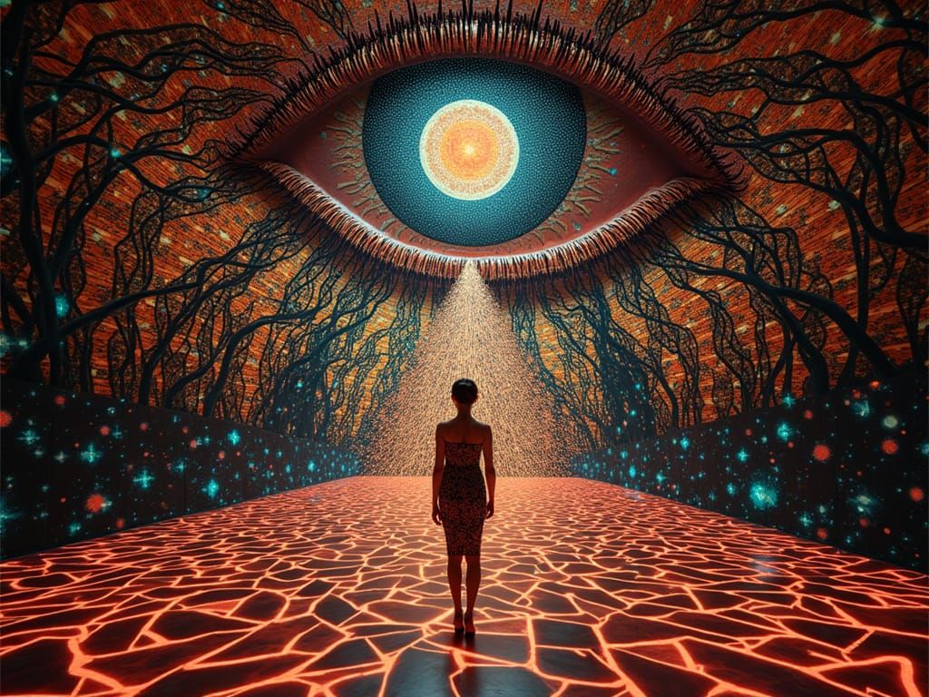 Götterdämmerung 3D whirlington funkytown math art couture special eyes patterned reflections symbolic dreams and neuromorphic abstract holograms and AI evil replicant wearing the latest neuromorphing fashion tenebrism lighting masterpiece 3D collage by Fornasetti brilliantly attention-seeking spiking ...