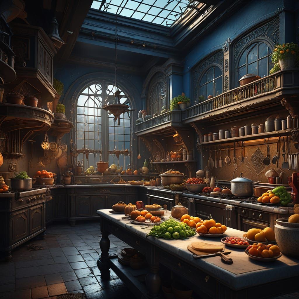 This image shows a vibrant and detailed matte painting for Culinarians Day. The fantasy concept art features deep colors and intricate details, rendered in 8k resolution.