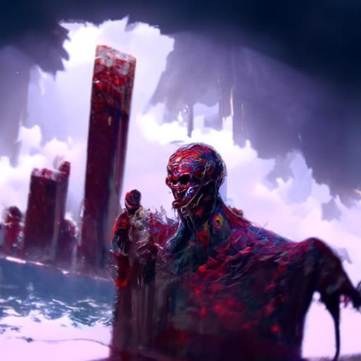 A nightmarish coral reef city appears to be constructed from human remains. The image evokes a sinister feeling.