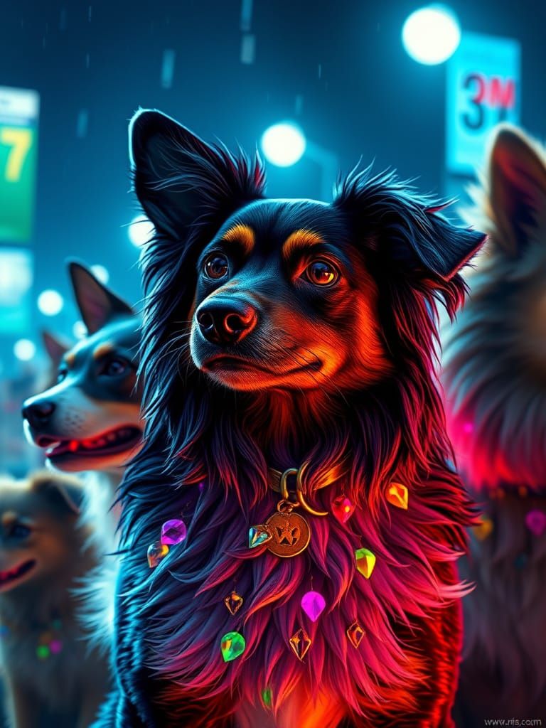 Easily create your own pet parade images with our free AI image generator, featuring deep colors and cinematic lighting
