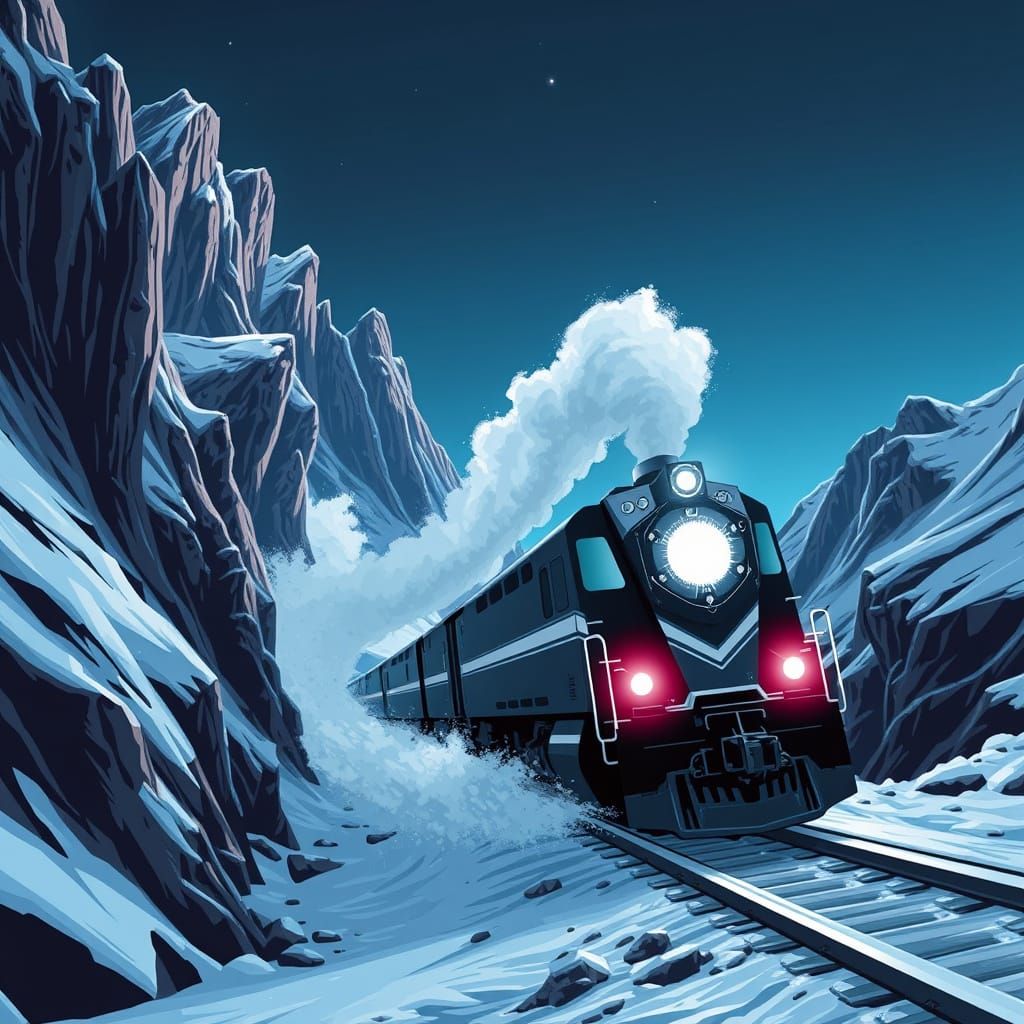 Easily generate powerful electric train images in icy canyons with our free AI art generator.