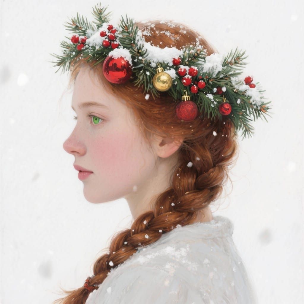 Generate your own unique AI portraits, featuring braided auburn hair and festive wreaths. It's free and easy!