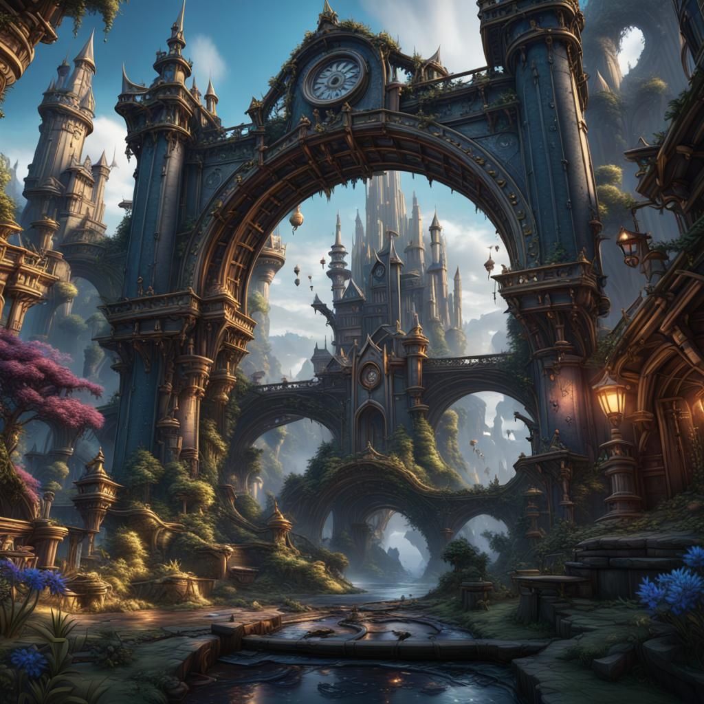 This image shows a detailed matte painting of Sonic the Hedgehog. It features deep, complementary colors and intricate details in a fantasy concept art style, rendered in 8K resolution.