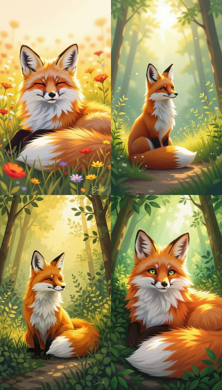 This image shows an AI-generated interpretation of a relaxed fox. The artwork captures the essence of tranquility and the natural beauty of the animal in a serene setting.