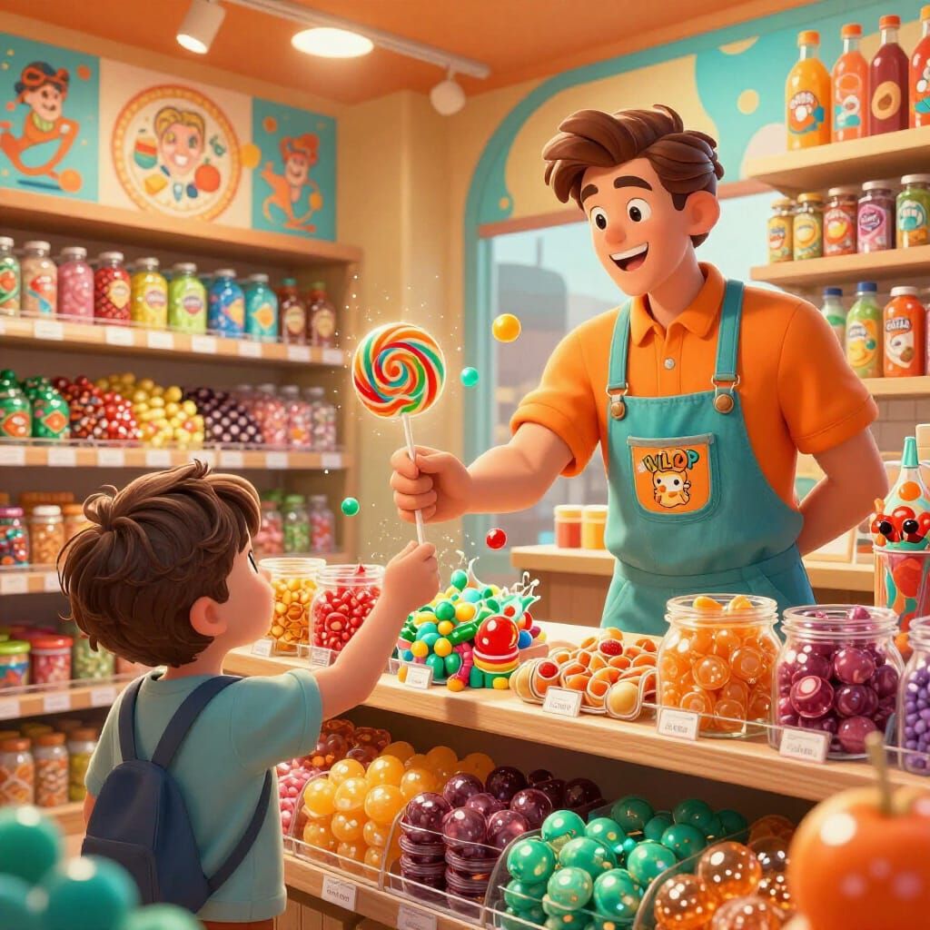 Easily create your own candy store images with our free AI image generator. Perfect for sweet scenes!