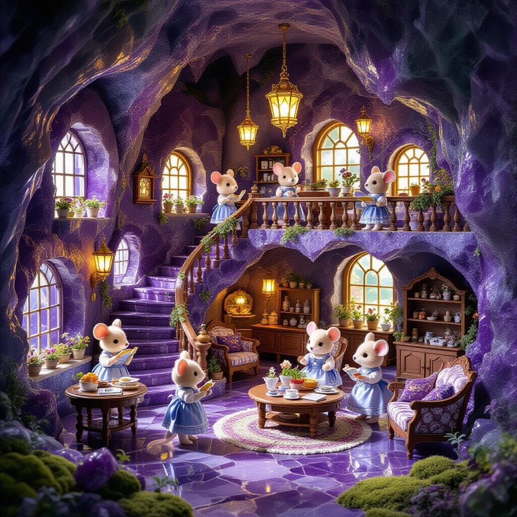 Generate your own whimsical Sylvanian Families-style amethyst houses with our free and easy AI image tool.