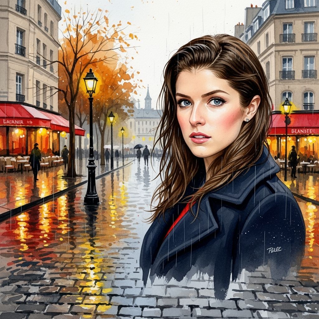 Generate your own watercolor portraits of Anna Kendrick in Paris or any other setting with our free and easy AI tool.