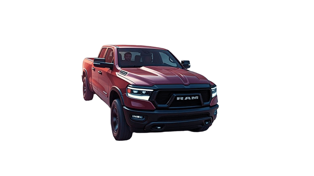 A Jedi Knight in brown robes races a Dodge Ram pickup through hyperspace. The image is reminiscent of Syd Mead's cosmic style, with vibrant neon lights and blurred starry clouds.