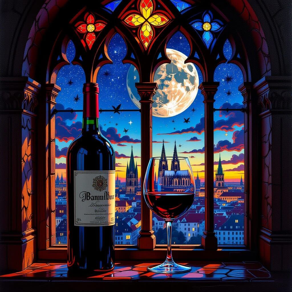 Generate your own AI art inspired by Berlin, red wine, and stained glass. Free and easy to use!