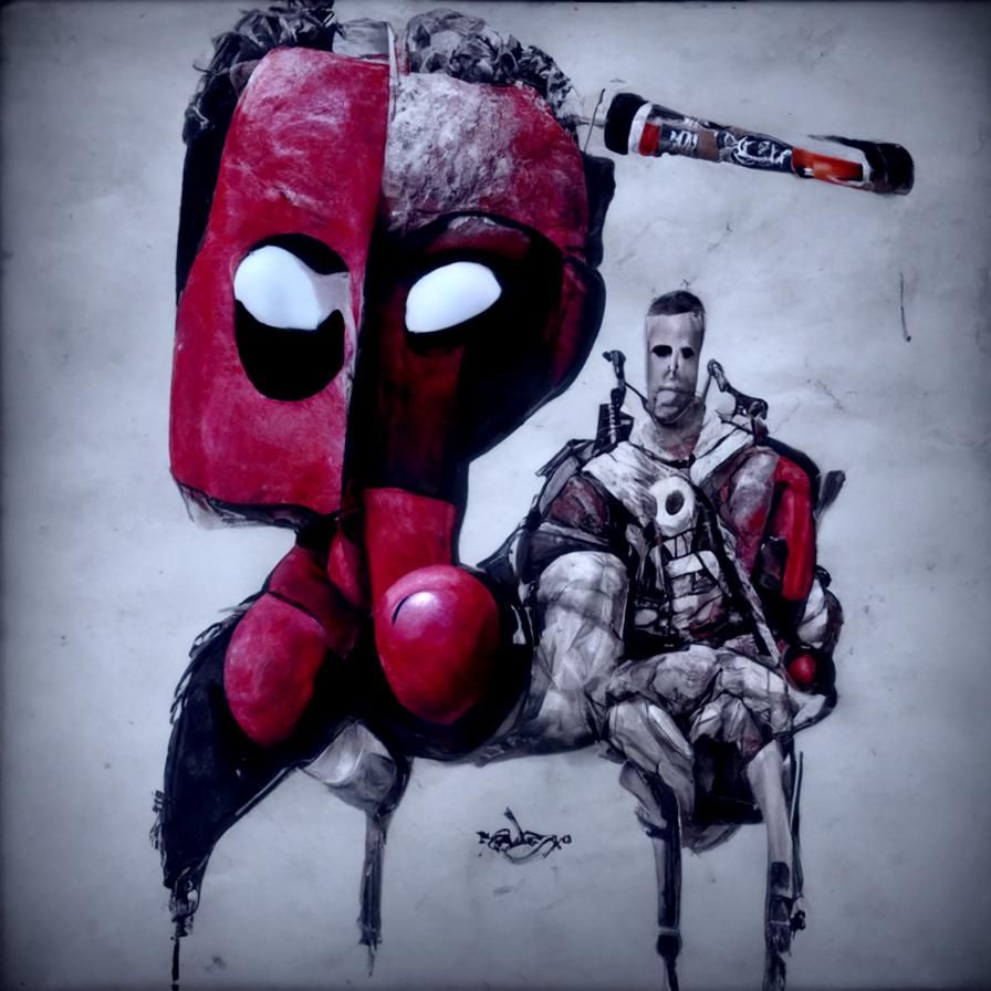 This image shows the result of an AI image generator's interpretation of a prompt featuring the Marvel Comics character Deadpool.