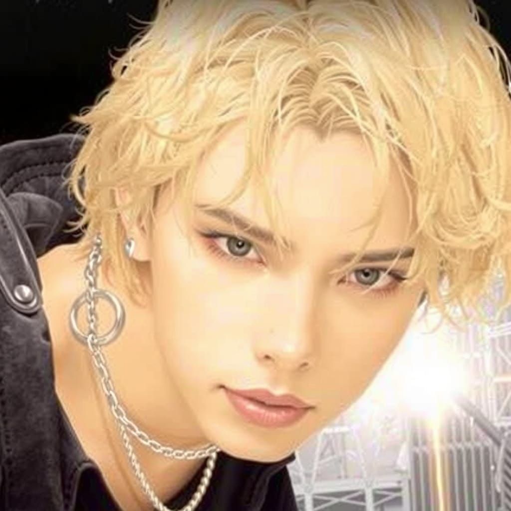 This image shows a confident Japanese boy singer with blonde hair and black eyes, dressed in sleek cyberpunk attire. The backdrop features vibrant graffiti, neon lights, and dynamic street art in a futuristic aesthetic.