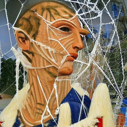 This image features a bull intricately constructed from delicate spiderwebs. The artwork evokes a sense of fragility and unique artistic expression.
