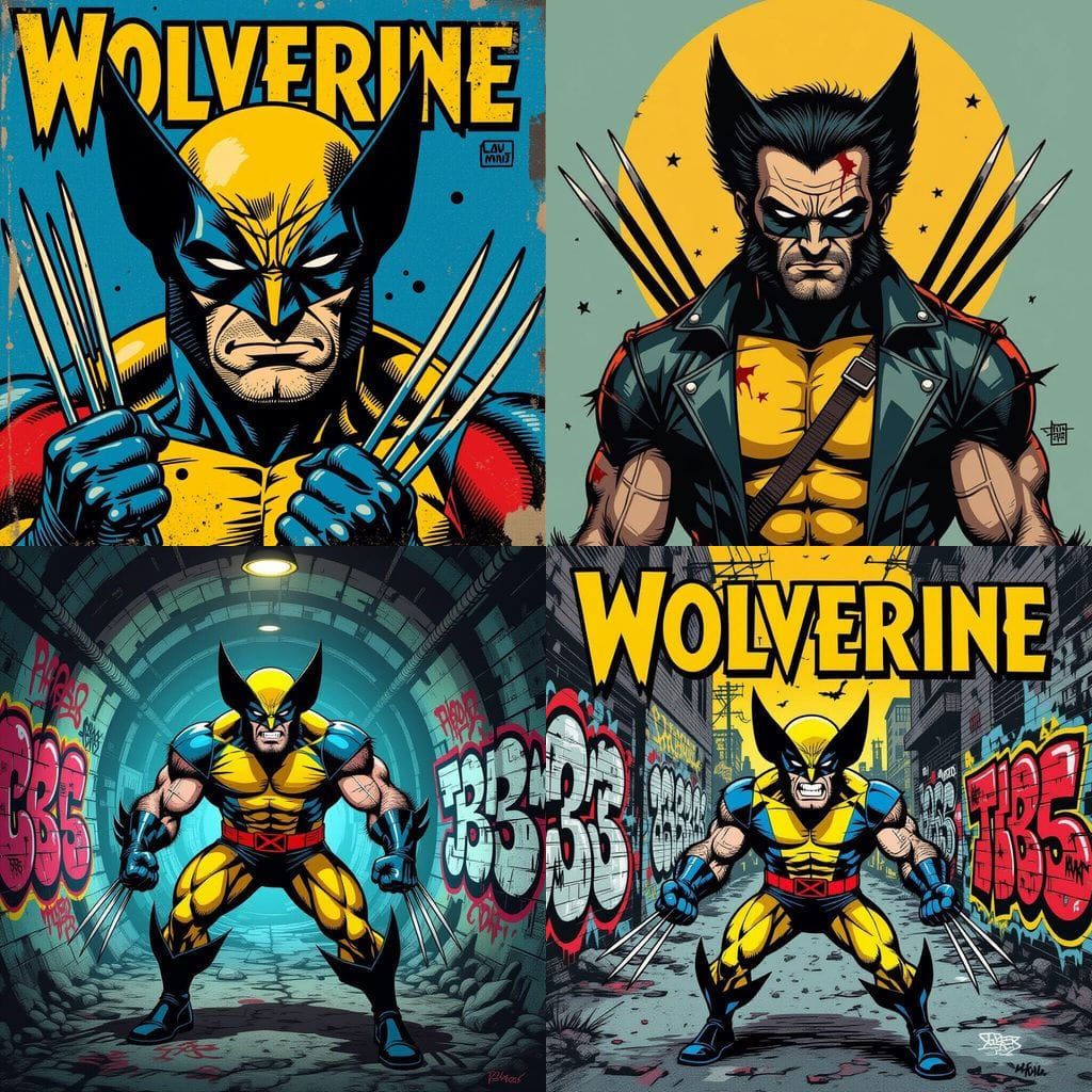 This image depicts Wolverine in a dark, graffiti-inspired comic art style reminiscent of Tim Burton. The artwork features horror elements and a retro aesthetic.