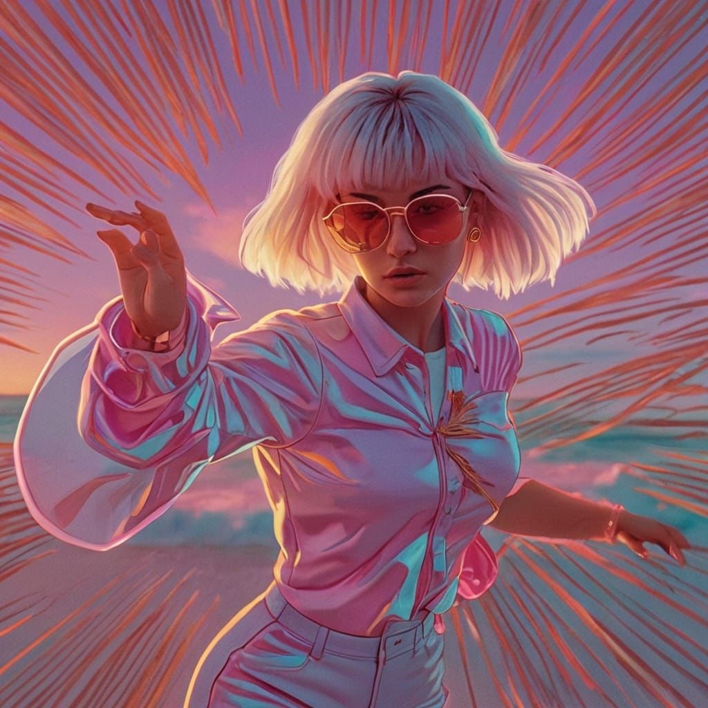 Generate your own vaporwave fashion girl images set in Hawaii for free with our easy AI tool.