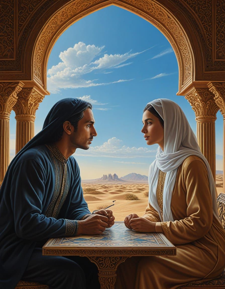 Easily generate unique images of couples in the United Arab Emirates with our free AI generator.