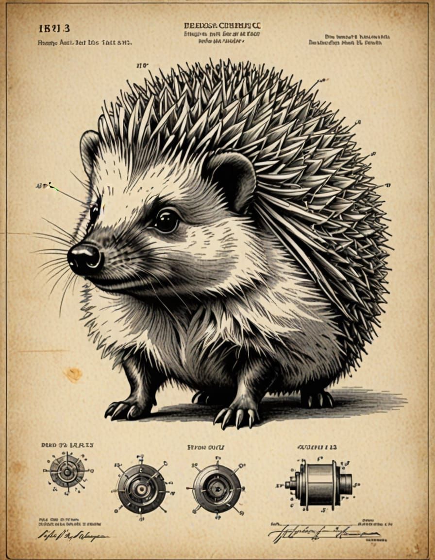 Instantly generate your own unique schematic hedgehog patent drawings with our free and easy-to-use AI tool.