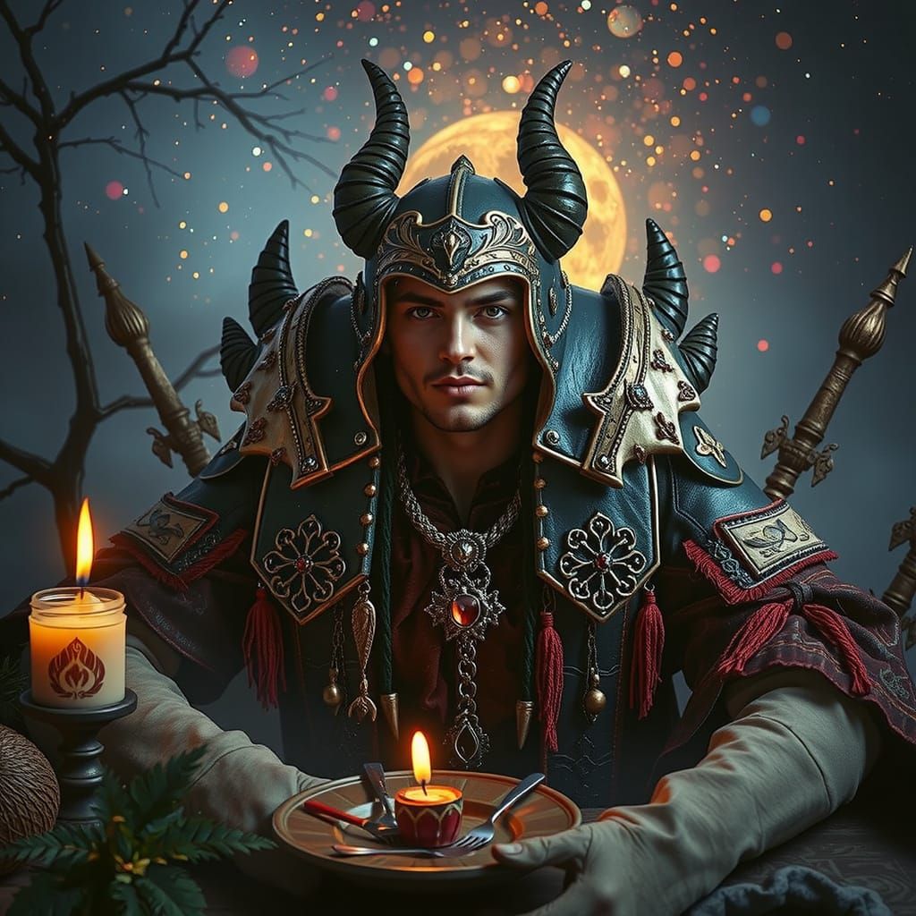 This vibrant image showcases a meticulously detailed, maximalist masterpiece featuring stunning triadic colors and a dramatic, atmospheric setting.
