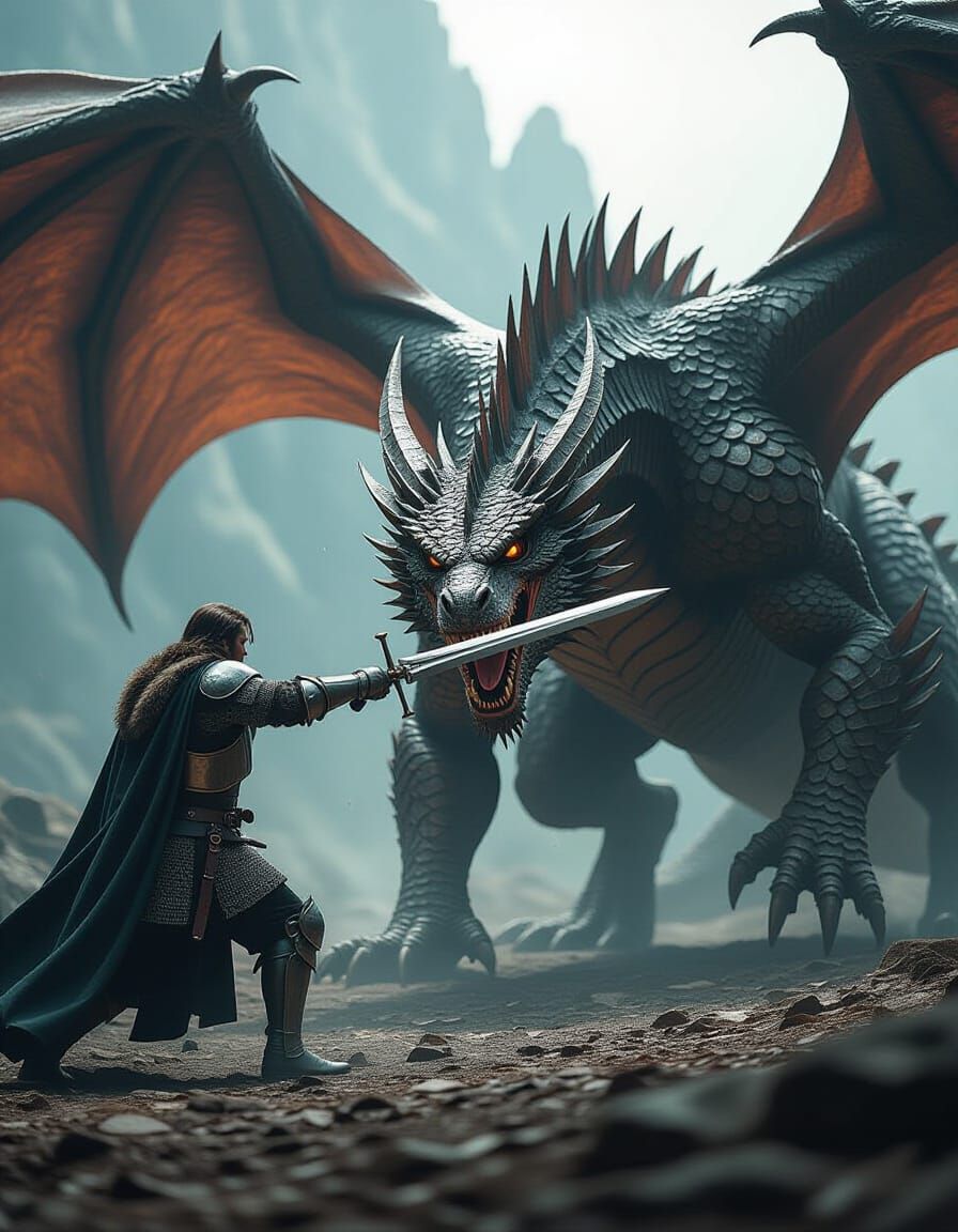 Easily generate epic knight vs dragon images with our free AI. Unleash your imagination and create unique scenes.