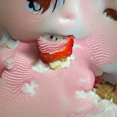 This image shows a vibrant and whimsical illustration of Strawberry Shortcake. The AI interpretation provides a cheerful and colorful depiction.