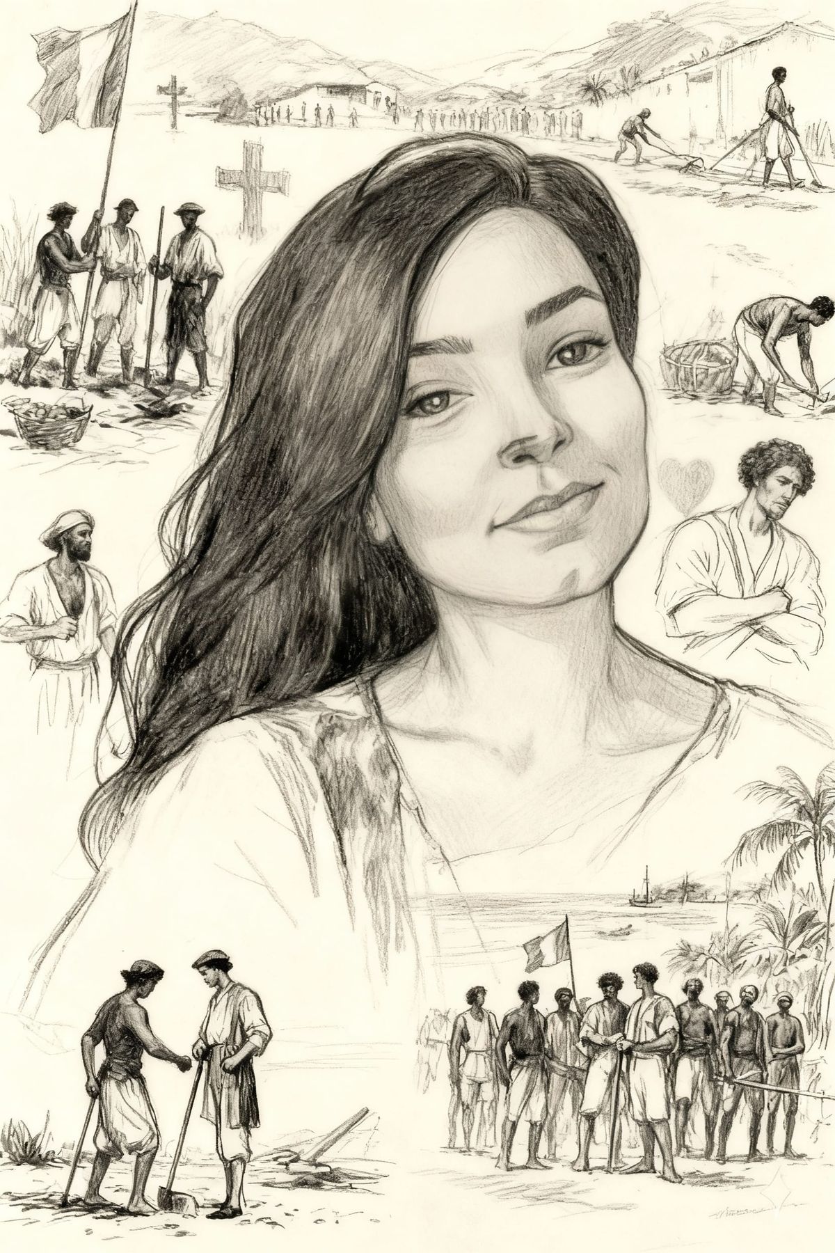 This image is a rough sketch depicting the saga of Italian immigrants in Brazil during the late 19th century, focusing on love, courage, and resilience.