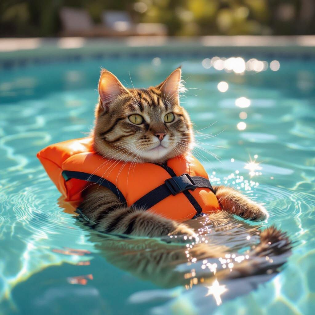Create your own adorable cat images in a pool! It's fun, free, and easy to do with our AI generator.