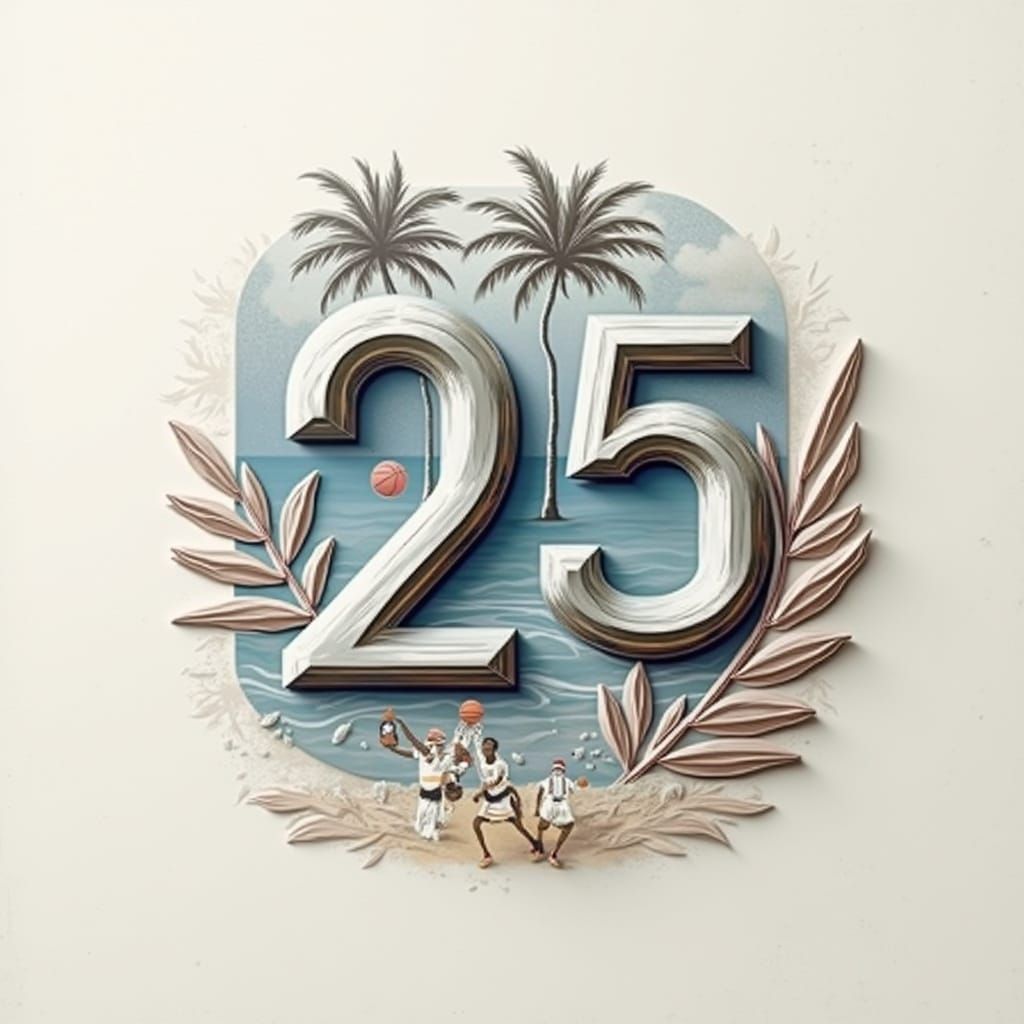 A vintage travel poster promoting a tropical island basketball tournament. The artwork features vibrant illustrations and bold typography reminiscent of mid-20th-century designs, infused with a modern graphic style.