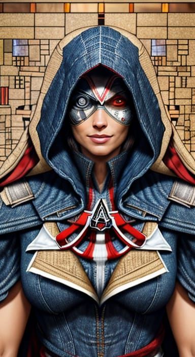 This intricate portrait showcases a beautifully symmetrical hieroglyphic mummy lady, crafted in stunning micromosaic stained glass with impeccable attention to anatomical detail and intricate design.