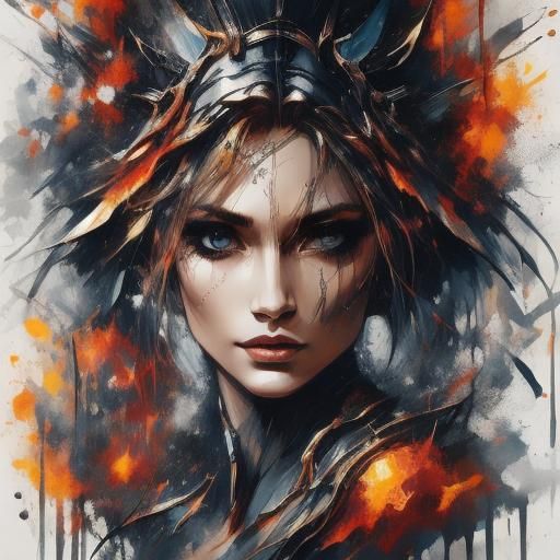 This image shows an abstract composition with smoky and splashy elements. The artwork features a dark color palette and evokes a sense of mystery.