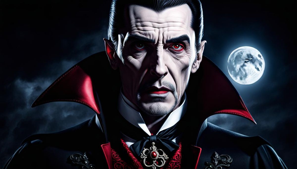 A hyperrealistic portrait of Count Dracula bathed in moonlight. The image is beautifully shot with intricate details, high contrast, and a cinematic, atmospheric mood, capturing a sense of horror.