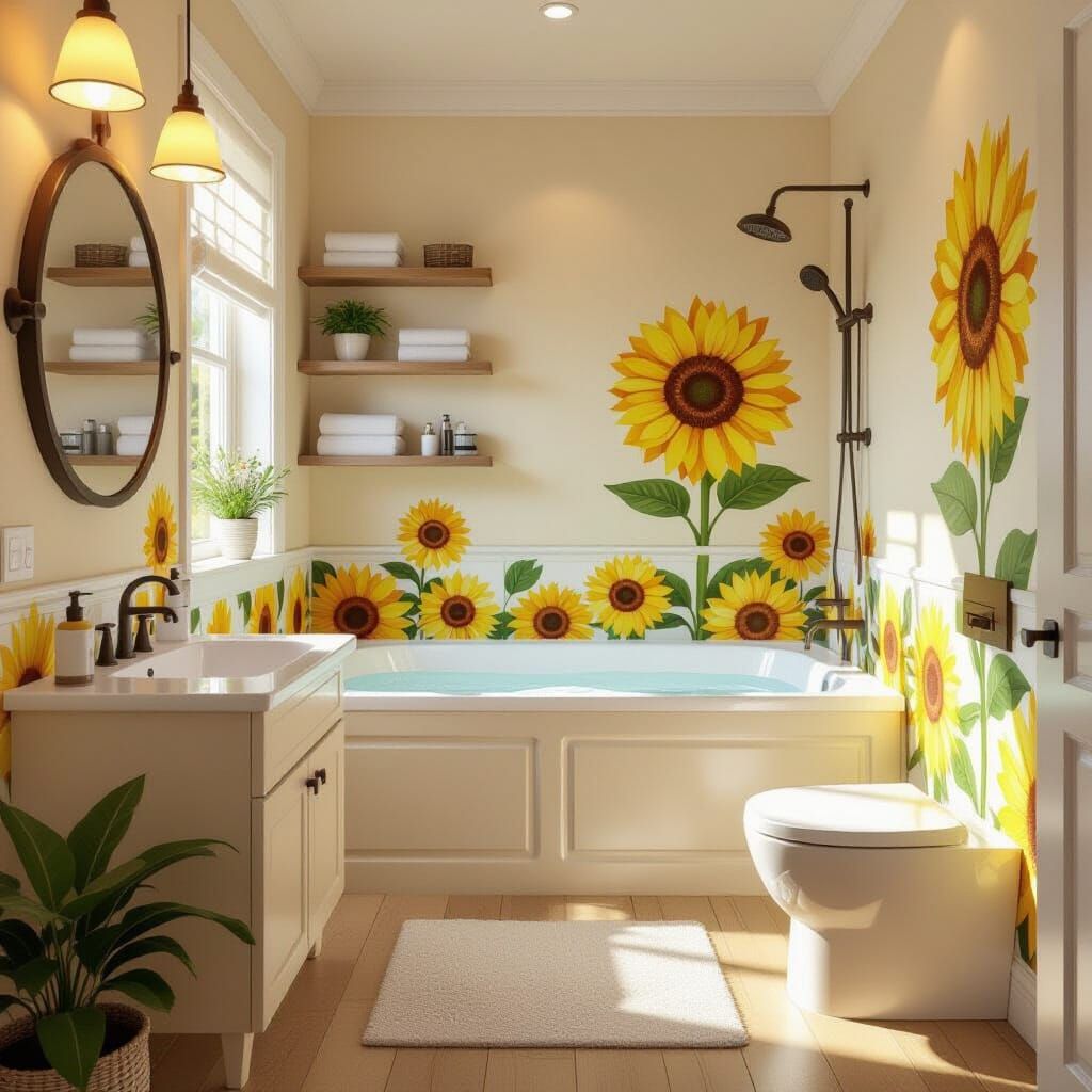 Create your dream sunflower bathroom with our free AI image generator. Easy, fast, and fun!