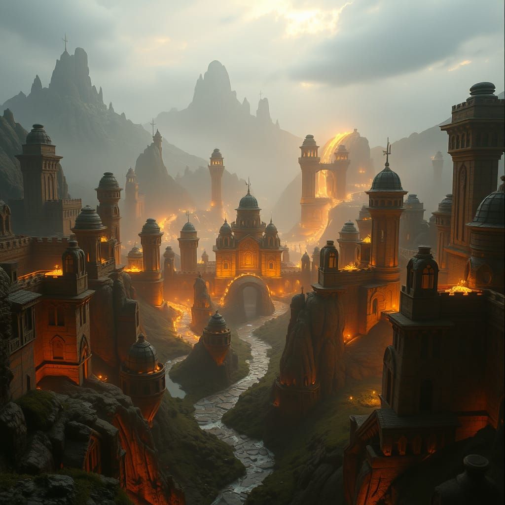 This cinematic film still captures a majestic, sprawling magical world, bathed in warm, golden light, with subtle film grain and a dreamy quality, reminiscent of big-budget blockbusters and timeless fantasy epics, blending the boundaries between live-action and fantasy with meticulous post-processing and...