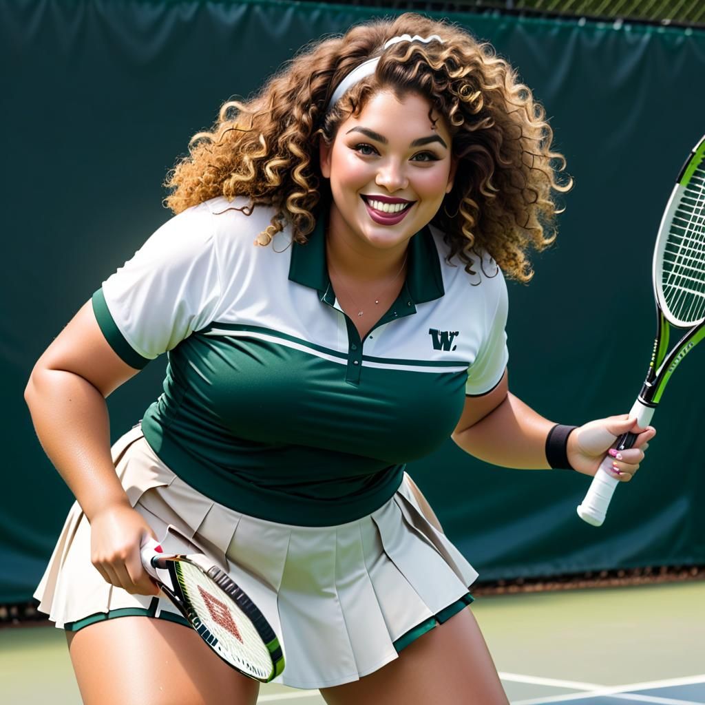 This image shows an advertisement for the Wolfgang Open tennis tournament. It features several curvy, smiling women with elaborate makeup and brown curly hair playing tennis.