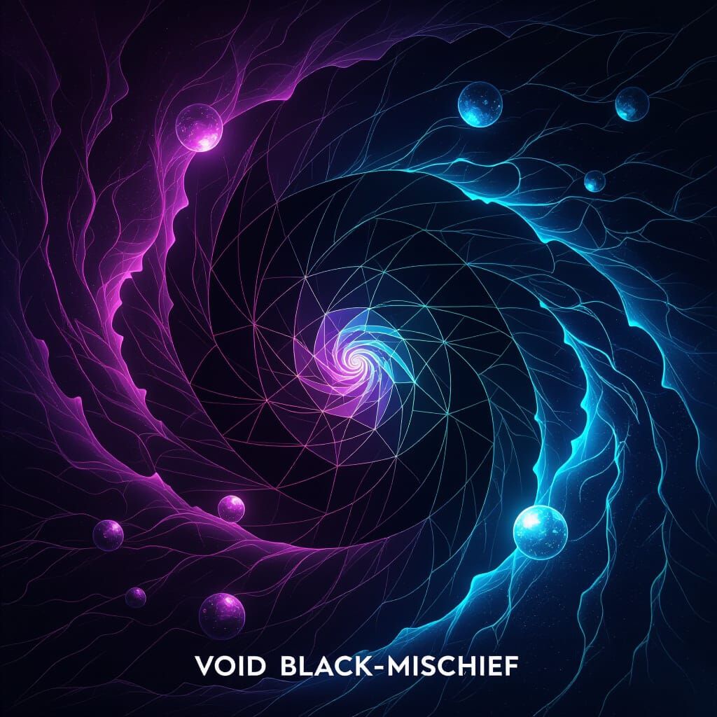 This image features a swirling vortex of cosmic colors with ethereal orbs and shimmering stardust, rendered in a dramatic, mysterious style.