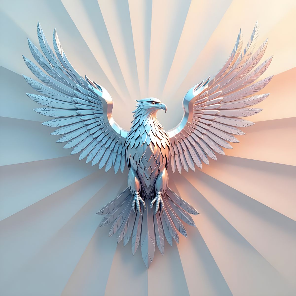 A striking picture of a metallic falcon with a shiny silver finish, set against a brightly colored radial gradient. This 3D digital artwork evokes a cinematic feel.