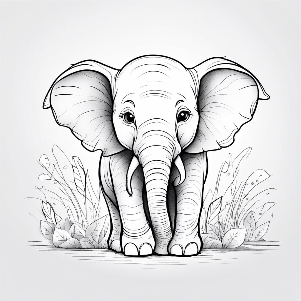 This image shows a minimalist coloring page of an adorable elephant. The simple line art features clean lines and ample white space, perfect for creative coloring projects.