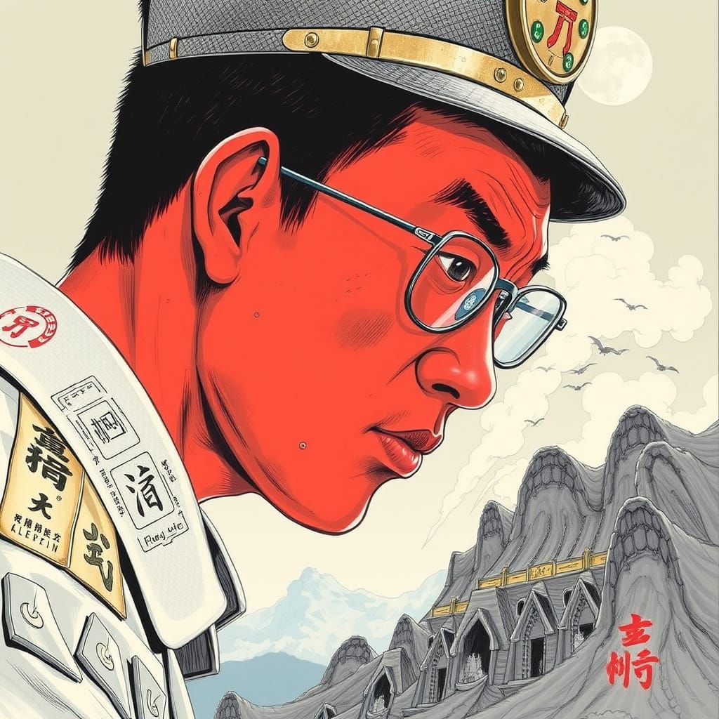 This image combines the dynamic lines of a Korean master with the vibrant colors of a German Expressionist, creating a unique surrealist piece that blends styles.