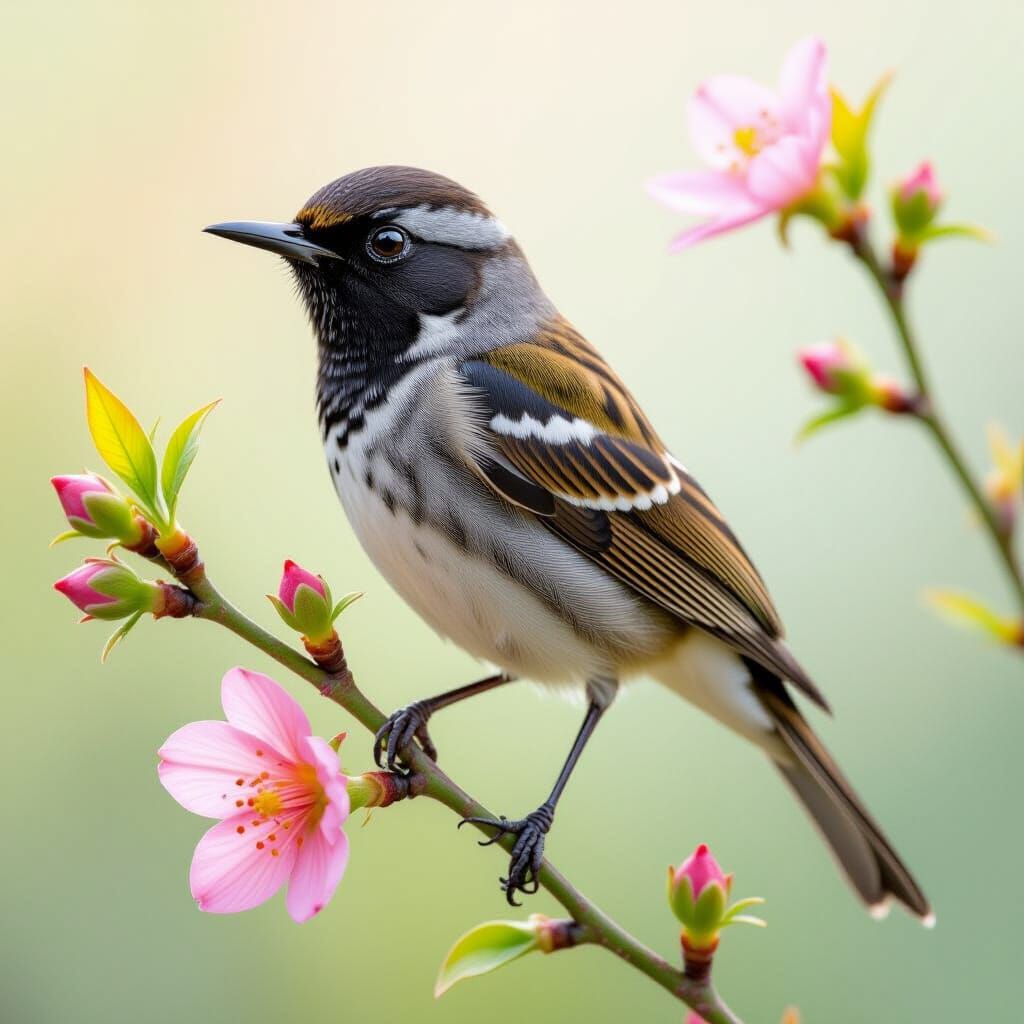 This image shows a Hawaiian black-faced honeycreeper, or Poʻouli, distinguished by its black mask and finch-like bill. This digital matte painting captures the bird's unique features in great detail.