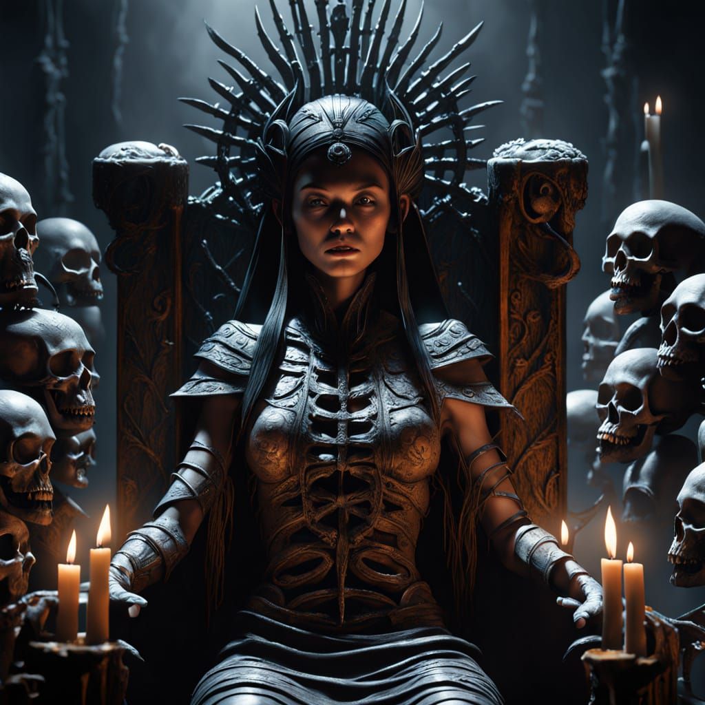 Easily generate your own dark fantasy art with our free AI image generator, featuring mythical creatures like Himiko the shaman-queen.