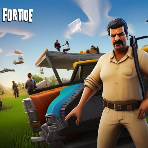 A detailed matte painting of Pablo Escobar in Fortnite. The image features deep colors, intricate details, and complementary colors, rendered as fantasy concept art in 8k resolution.
