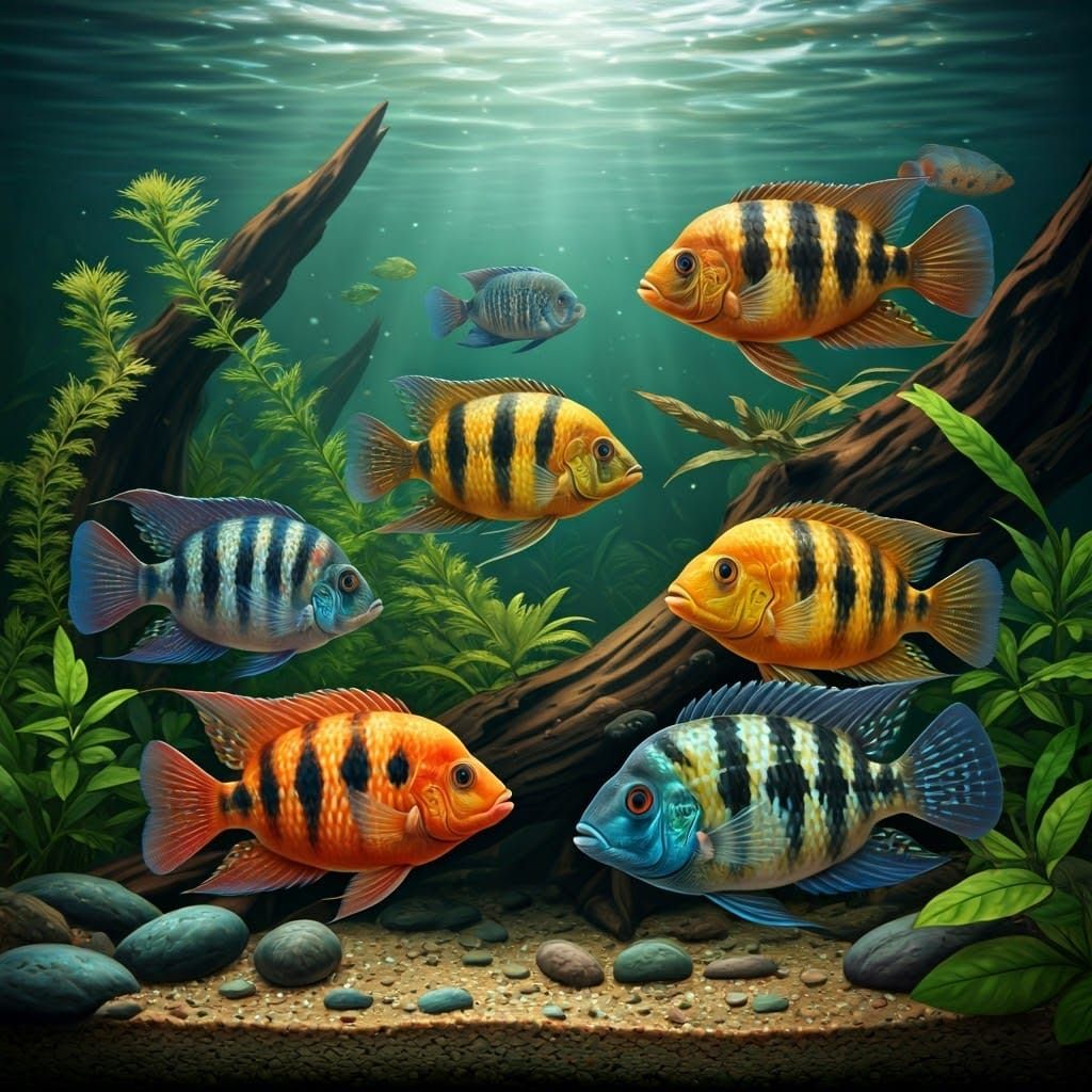 Create realistic underwater images of Central American cichlids with our free AI generator, easy and flexible